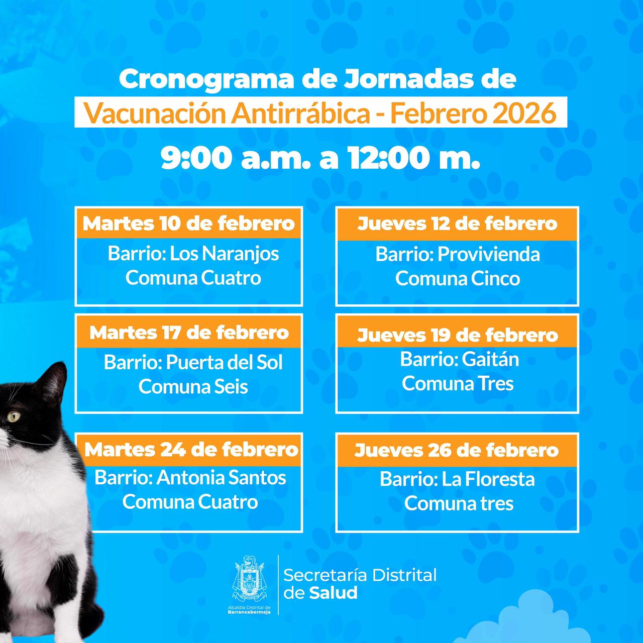 “La jornada inicia este martes martes, 10 de febrero, en el barrio Los Naranjos y está dirigida a perros y gatos mayores de tres meses, que se encuentren en buen estado de salud. Los perros deben ser llevados con correa y los gatos deben transportarse en guacal o bolsa segura, que garantice su protección y la del personal de salud”, anunció Milagros Jiménez, directora de Salud Integral.